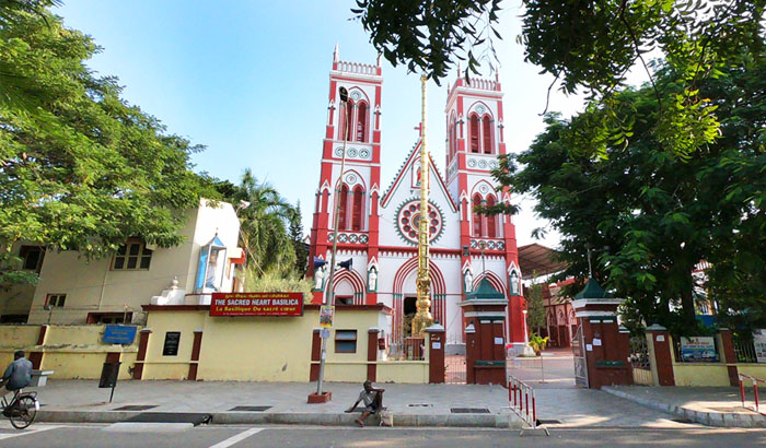 In the year 1895, the then Archbishop Mgr.Gandy consecrated theArchdiocese of Pondicherry to the Sacred Heart of Jesus. He wished to build a new church in devotion of Sacred Heart of Jesus. Rev. Fr. Telesphore Welter, the parish priest of Nellithope prepared the building plan and parish priest of Cathedral Rev. Fr. Fourcaud commenced the construction of the new church in 1902 at the Southern side of Pondicherry. The blessing of the church and the first mass was held at the western wing of the present church by Mgr. Gandy on 17, December 1907 and the new parish surrounding this church has been established on 27, January 1908.